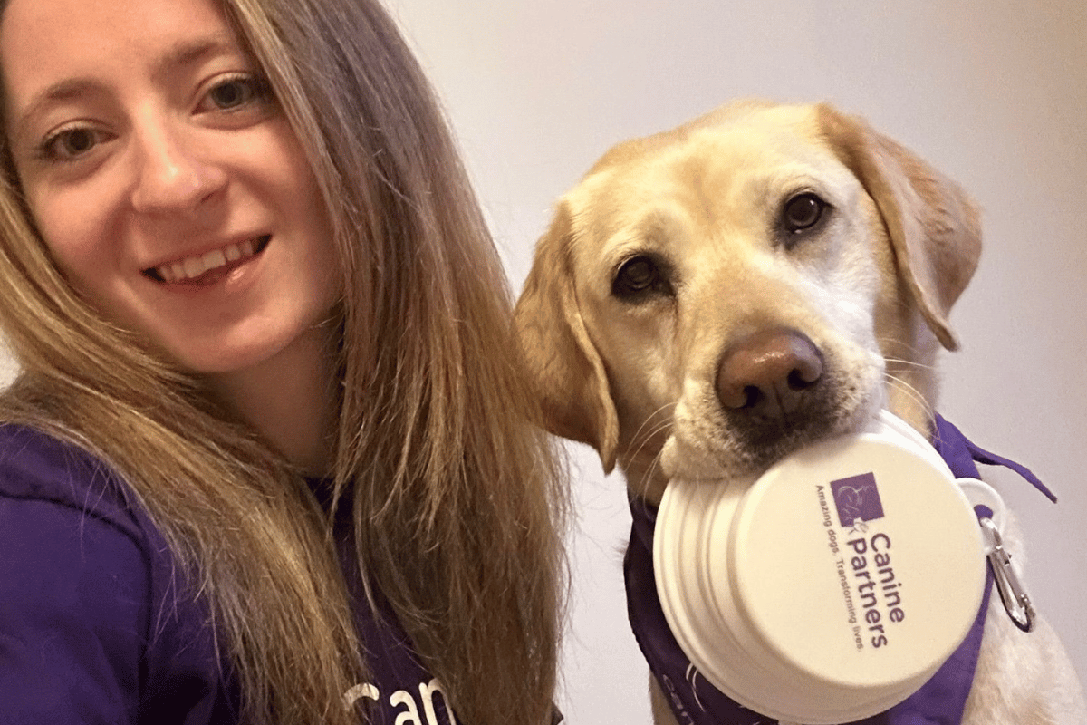 “When I attended my first foster dog’s graduation ceremony, I was amazed at the difference he’d made to his partner’s life and felt so special to have played a small part in his training journey. I knew at that point that I wanted to work for the charity. I started volunteering in the kennels at the National Training Centre and soon after got a job as a Dog Welfare Officer. I worked in that role for around two and a half years before moving into my dream role as an Assistance Dog Trainer in May 2022. I feel so lucky to have found my dream job as well as my dream dog in Myrtle. She’s the best sassy little sidekick I could ask for. I love going to events, showing off her talents, and making audiences laugh with her cheeky little quirks. She has the cutest smile and is a pro at drawing in the crowds.”