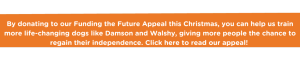 “When I first suffered my injury, life looked so bleak. Thanks to Canine Partners, I have had the love and support of two amazing dogs who have truly transformed my life. But I know there are so many other people still waiting for the same chance,” finished Jane