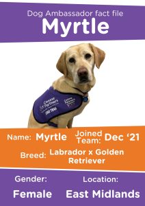 Hey everyone! I’m Myrtle and I am enthusiastic, fun, and loving! I just adore people, which is the main reason I am here as a Dog Ambassador for Canine Partners. This really is the perfect role for me.